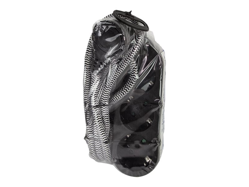 | Features | Indoor use, textile braided cable, outlet safety covers, low profile flat plug, angled plug, 45° angled outlets, pull plug handle |