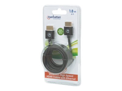 | Produktbeskrivelse | Manhattan HDMI Cable with Ethernet (Ultra Thin), 4K@60Hz (Premium High Speed), 1.8m, Male to Male, Black, Ultra HD 4k x 2k, Fully Shielded, Gold Plated Contacts, Lifetime Warranty, Polybag - HDMI-kabel med Ethernet - 1.8 m |