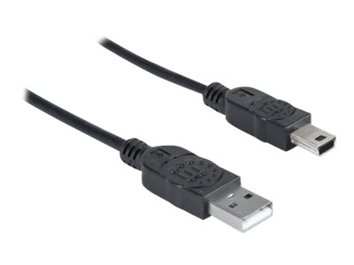 Produktbeskrivelse Manhattan USB-A to Mini-USB Cable, 1.8m, Male to Male, Black, 480 Mbps (USB 2.0), Hi-Speed USB, Lifetime Warranty, Polybag - USB-kabel - USB til mini-USB type B - 1.8 m