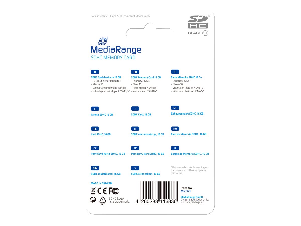| Produktbeskrivelse | MediaRange - flashhukommelseskort - 16 GB - SDHC |