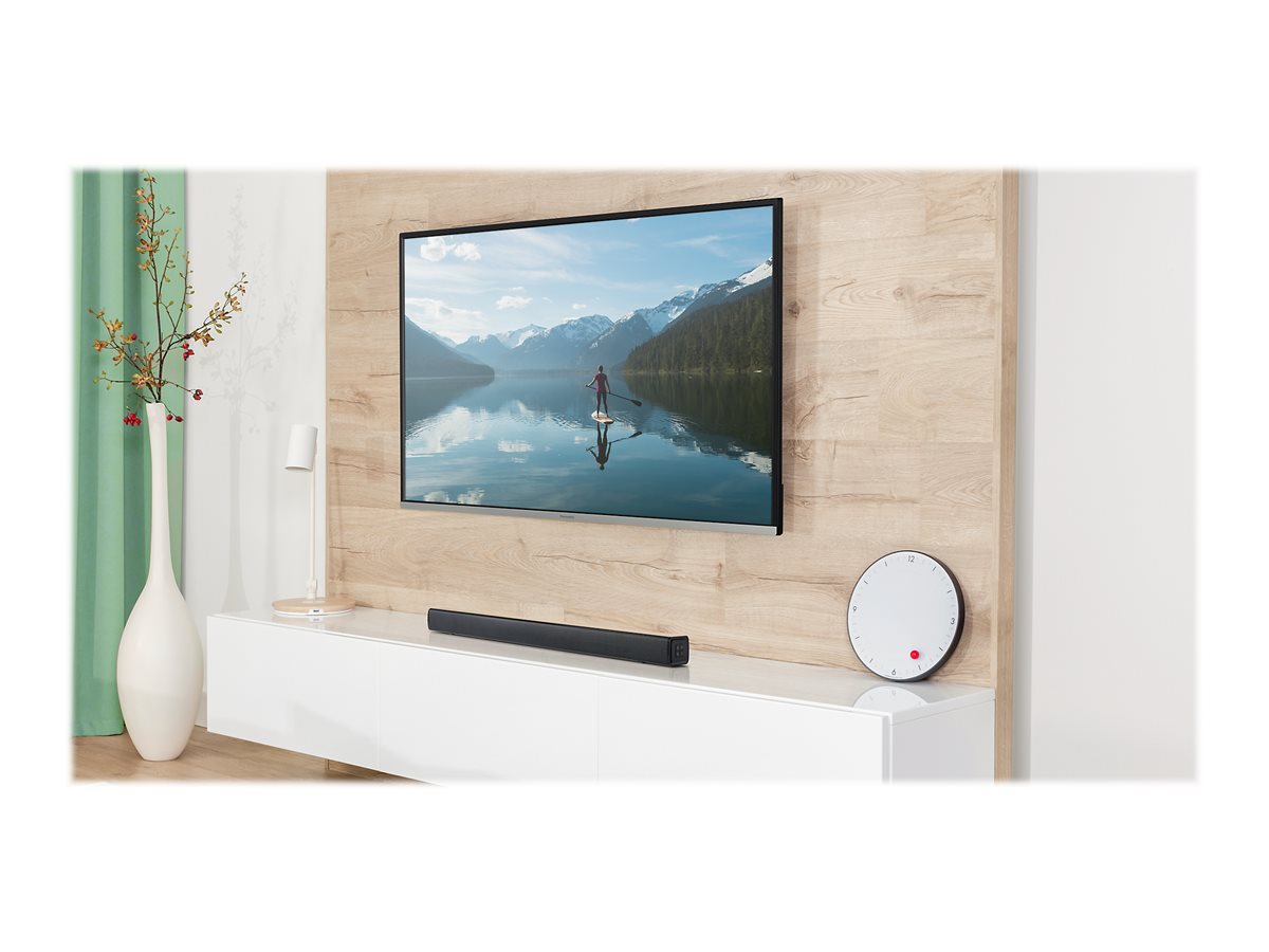 HTB100 er nem at montere på væggen under dit tv takket være de integrerede monteringsåbninger. Sæt bare de medfølgende skruer i væggen, hæng den på plads, og tilslut med et HDMI-kabel. Perfekt til rum, hvor rene overflader er vigtige.