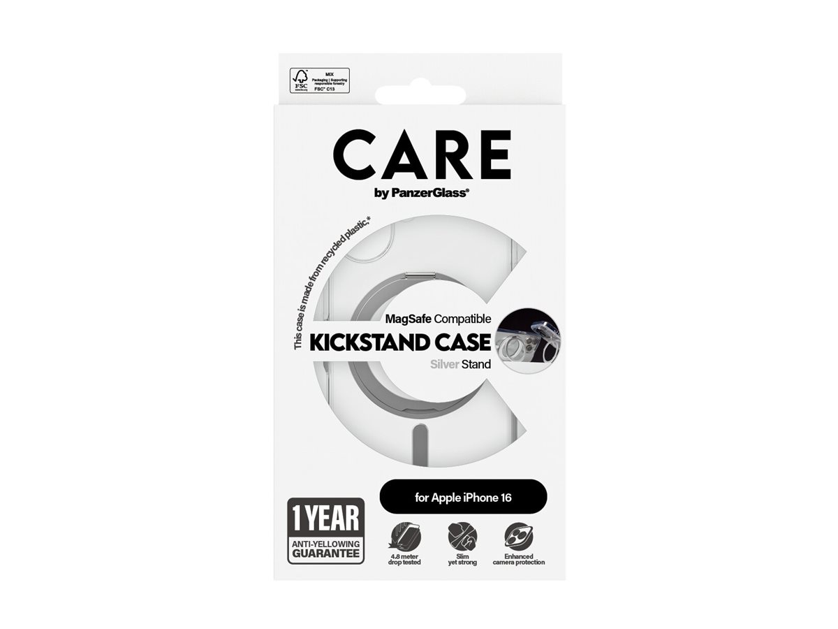 Få ultimativ beskyttelse af din mobil. Faldtestet på alle hjørner og vinkler fra 4,8 meters højde. Fremstillet af genanvendt plastik. Trådløs opladning og MagSafe-kompatibel. 1 års garanti mod gul misfarvning – uden forbehold og undtagelser. Det ultratynde og lette Kickstand cover er alt, hvad du drømmer om. Et af vores mest efterspurgte covere, der nu er tilgængeligt igen. Praktisk design med en ekstra feature til håndfri visning – både vertikalt og horisontalt. Gør det nemt for dig og dine børn at facetime, streame og se film – eller måske yogaundervisning. Håndfrit og hvor som helst. Giver dig desuden ekstra god beskyttelse af kameraet. DARE TO CARE Care er et internationalt livsstils- og techbrand, kendt for sit legende og ansvarlige design. Skabt af de bedste materialer og inspireret af de nyeste trends inden for mode, kunst og musik. Med CARE tager vi ansvar for mennesker og den verden, vi lever i. Vi understøtter bæredygtighed og dit personligt udtryk – og forlænger dine enheders holdbarhed. Opgrader din mobil til en stilsikker og godt beskyttet accessory. Vis verden, at du tager ansvar. Dare to care.