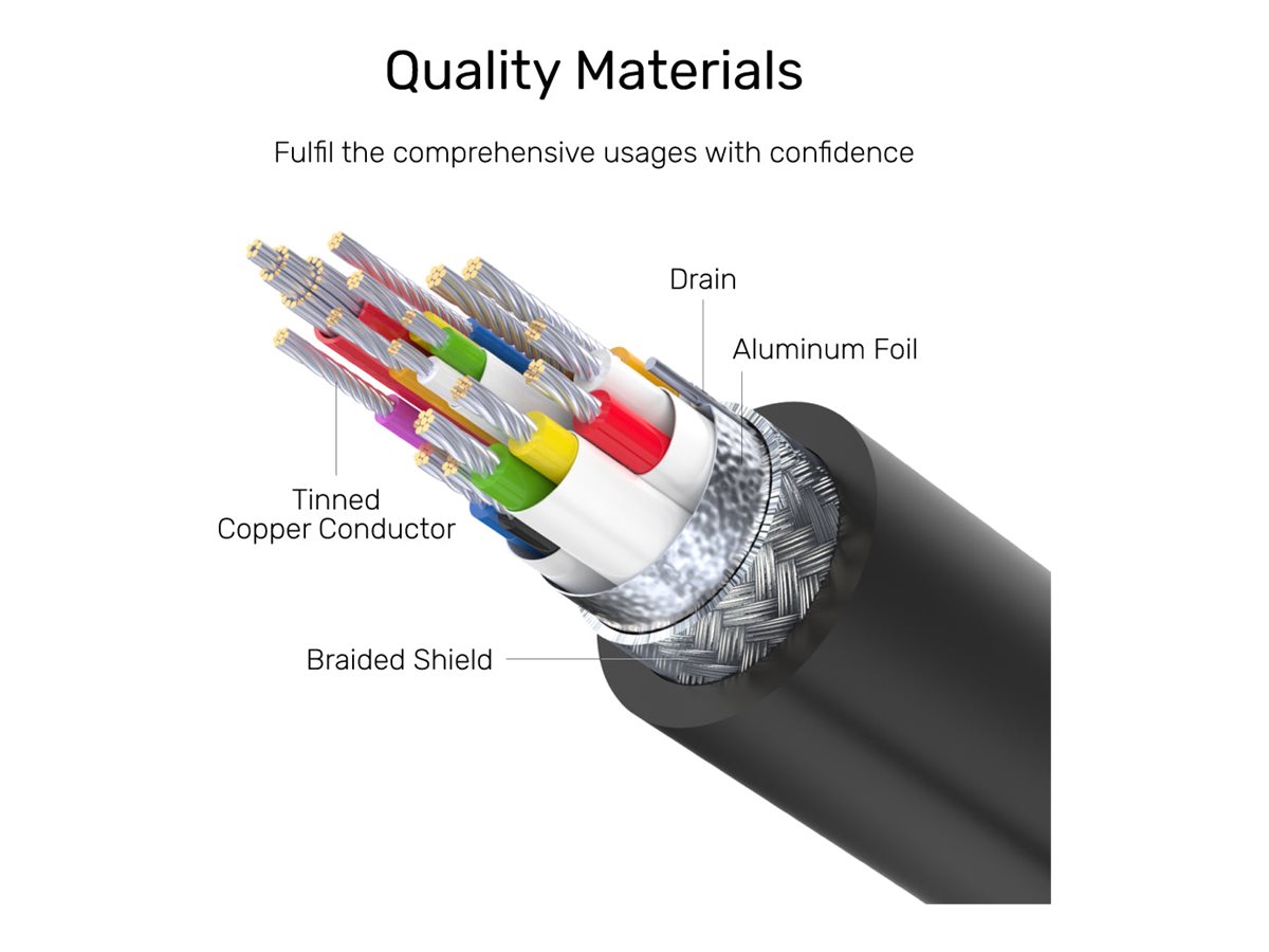 | Egenskaber | USB Power Delivery (100 W), 4K60 Hz support, drain-ledning, fortinnede kobberledere |