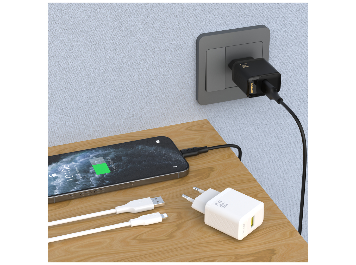 Dudao - Strømforsyningsadapter - GaN - 12 Watt - USB-A - USB-A til Lightning Kabel - Europa - Sort