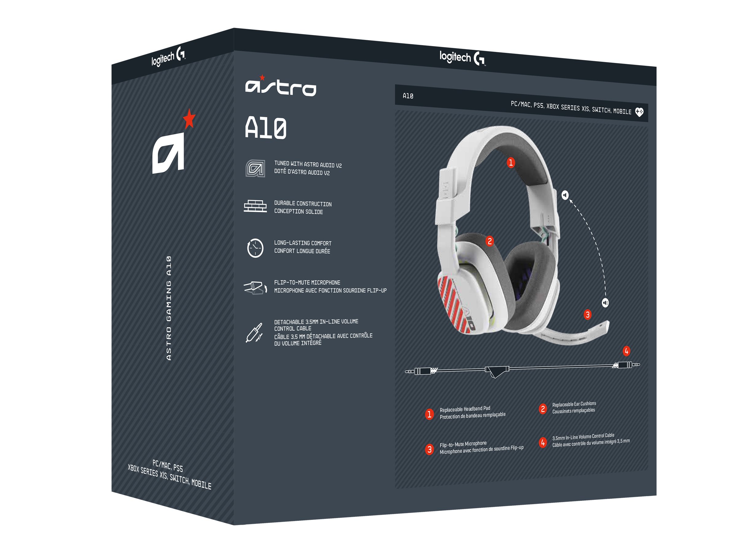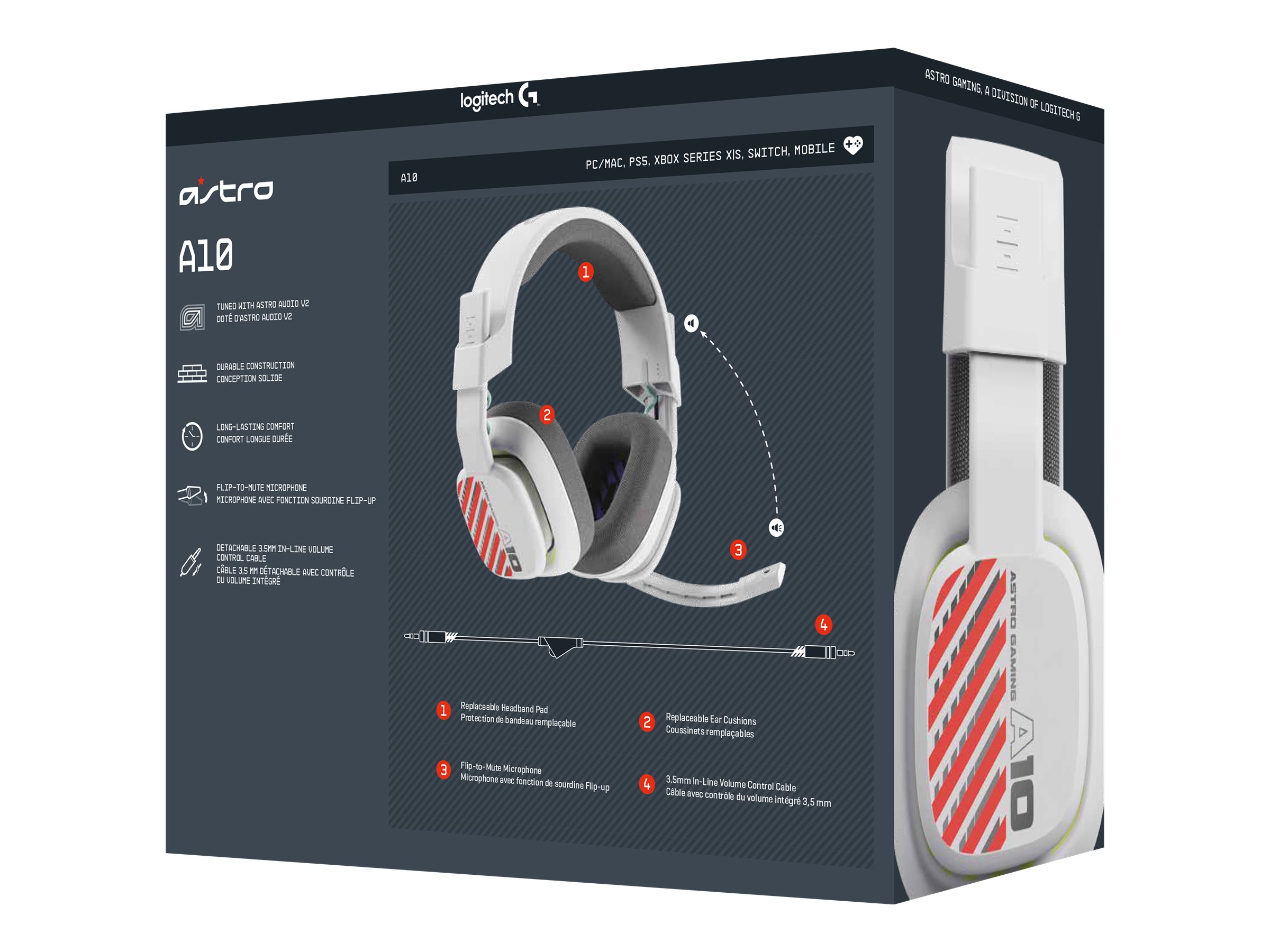 Gør dig klar til gaming hele natten med Astro A10-headsettet – de 32 mm lukkede, dynamiske drivere leverer intens lyd, og den integrerede volumenstyring betyder, at du aldrig behøver at rejse dig fra stolen.