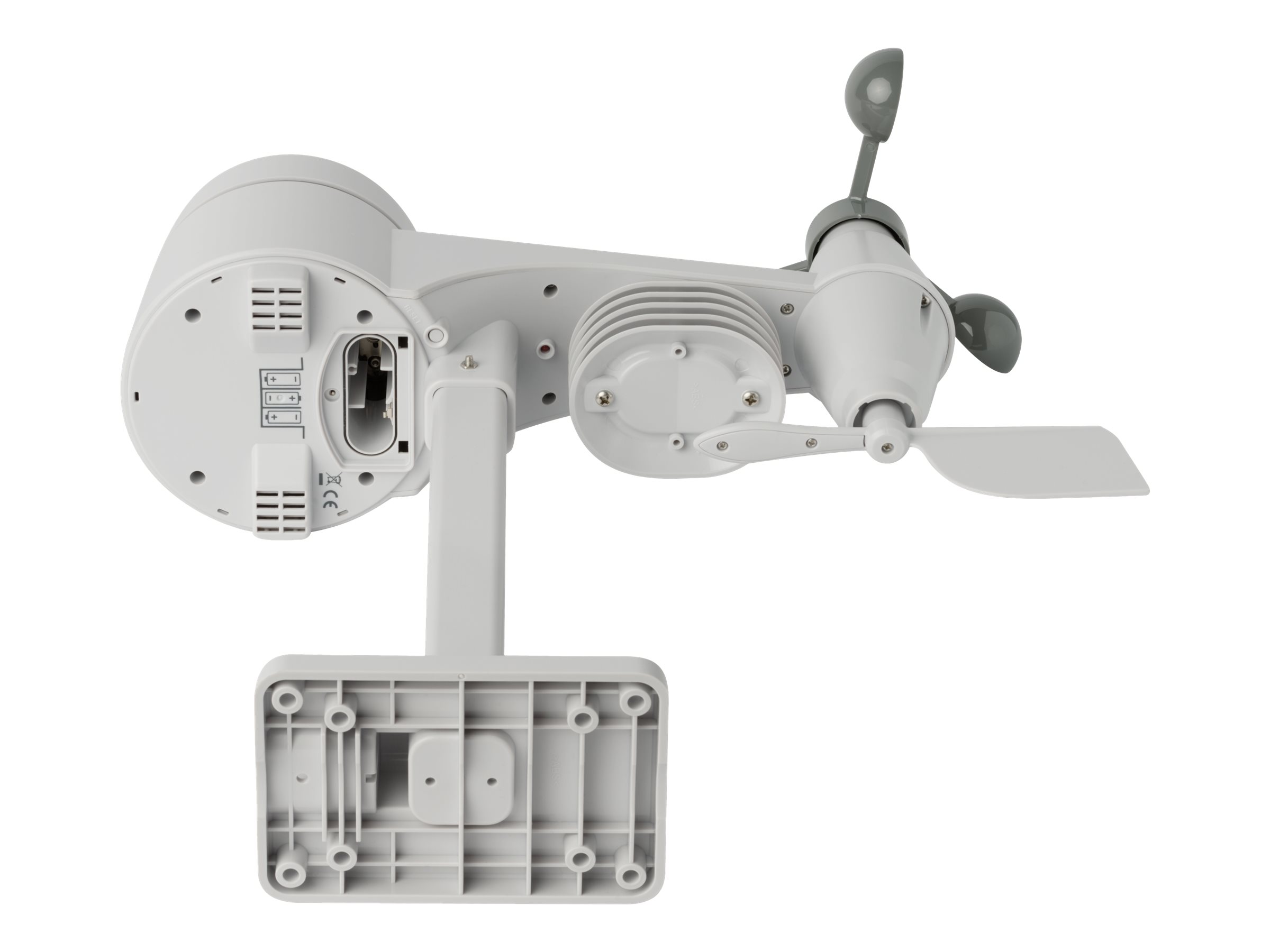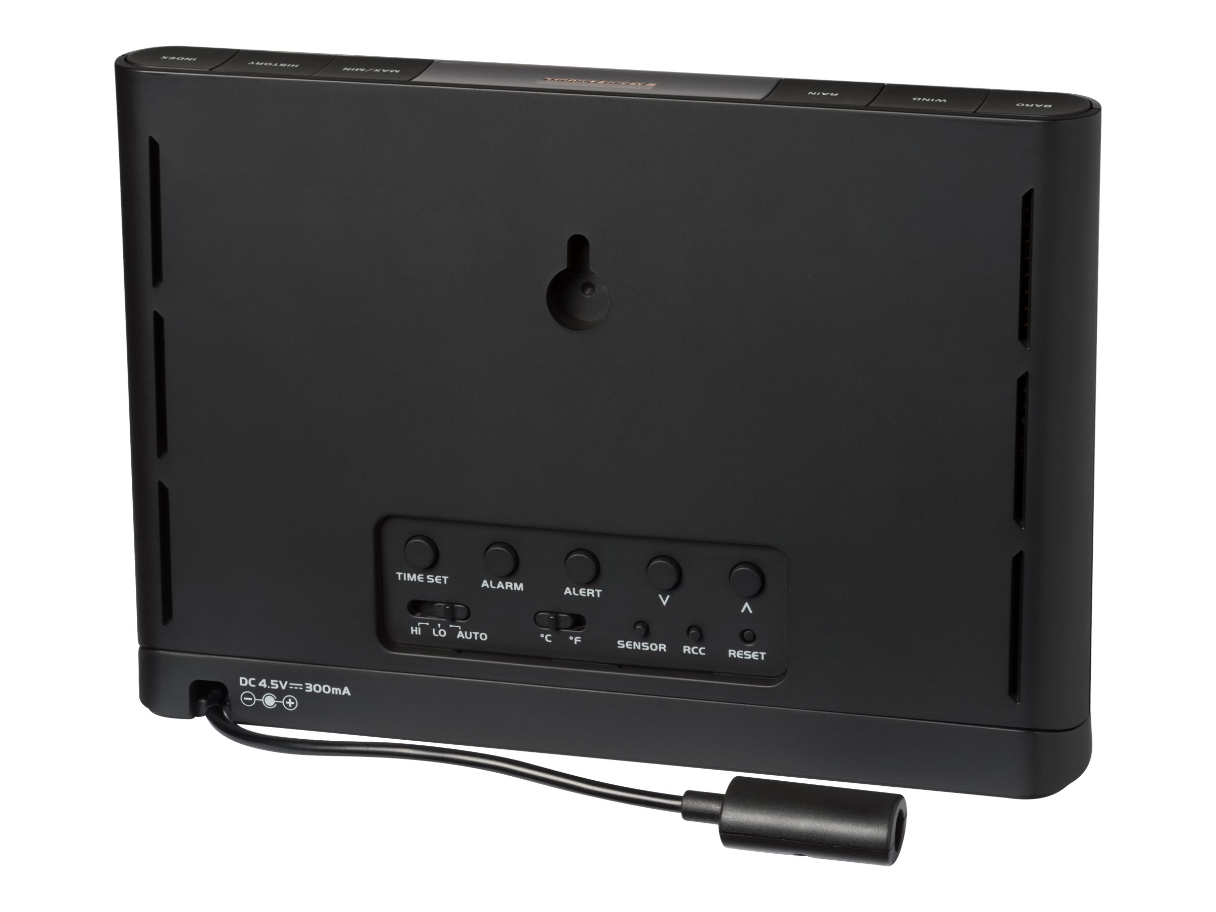 Funktioner Barometrisk tryk historikdiagram, lavt batteri-indikator, vejrudsigtsikon, dugpunktsdisplay, varmeindeks, komfortniveau-indikator, maks./min.-funktion, justerbar høj/lov temperaturvarsel, justerbar høj/lav fugtighedsvarsel, nedbørshistorikdiagram, alarmur med snooze, kalender, Beaufort vindstyrkeskala, vindretning, 3x AA batterier udendørs sensordrift, frostalarm