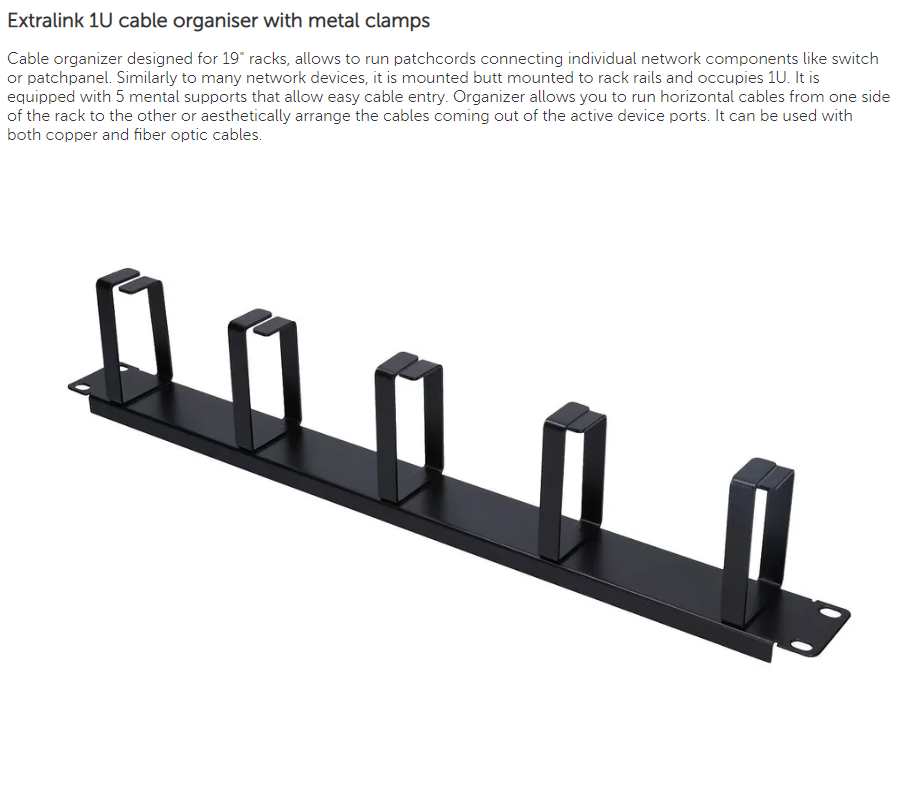 | Produktbeskrivelse | Extralink panel til kabelstyring - 1U - 19" |