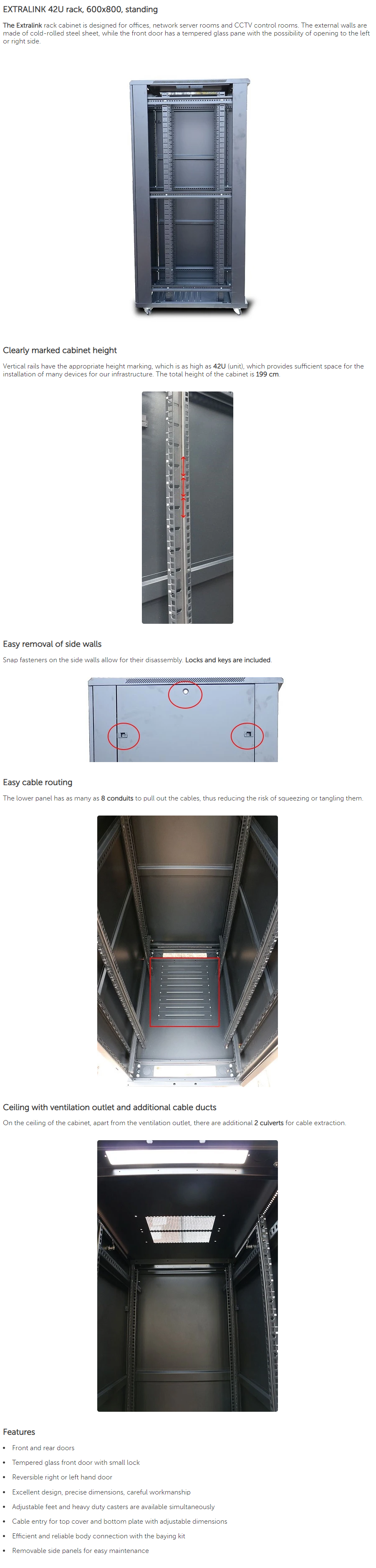| Produktbeskrivelse | Extralink - rack - 42U |