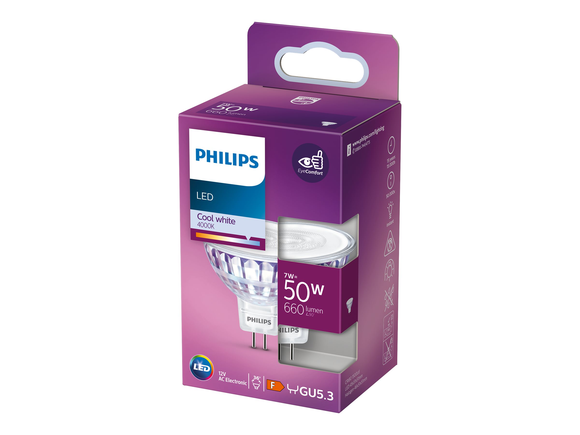 Philips - LED-spot lyspære - form: MR16 - GU5.3 - 7 W (tilsvarende 50 W) - klasse F - varmt hvidt lys - 4000 K