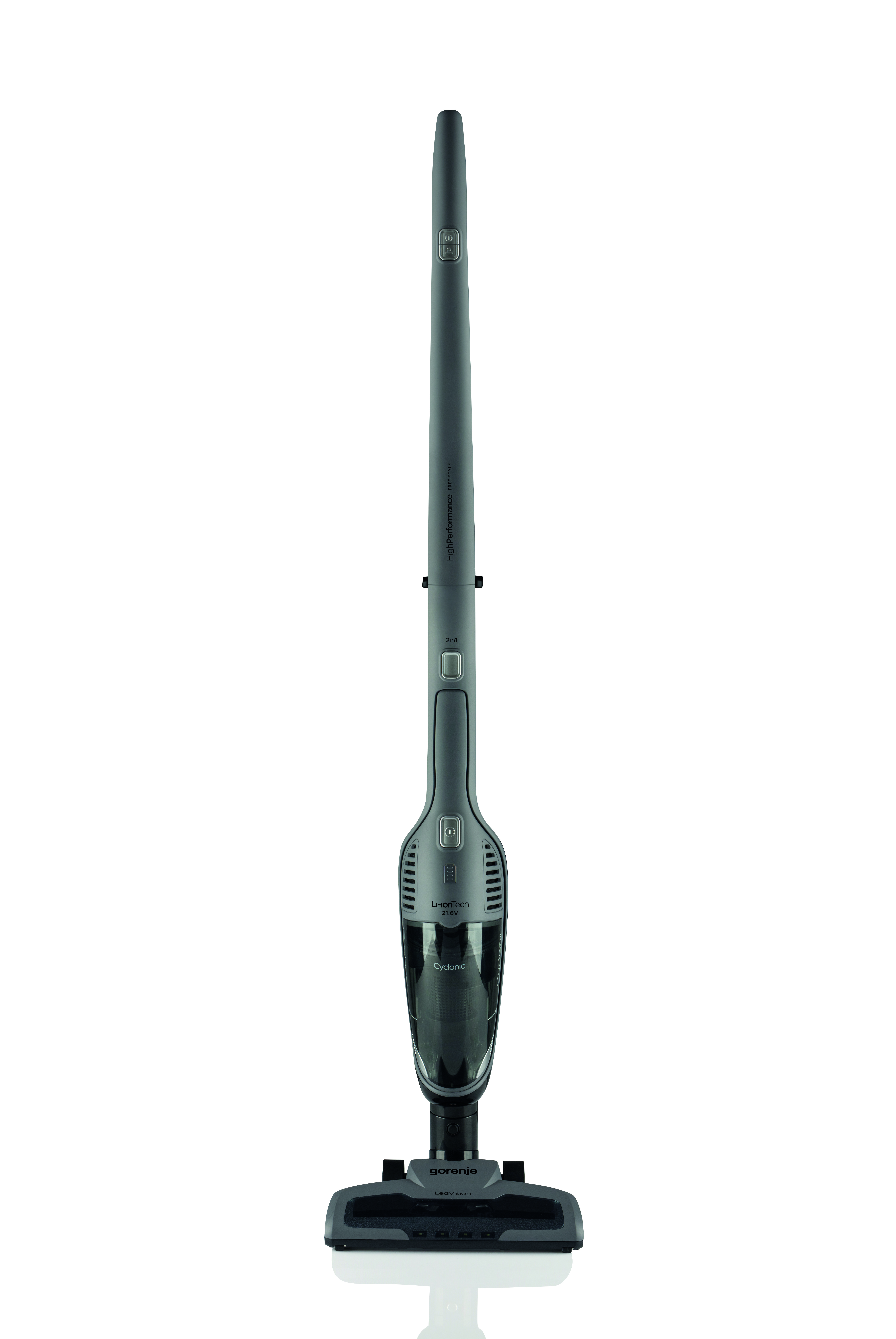 Gorenje SVC216FGD. Produkttype: 2-i-1 stangstøvsuger, Produktfarve: Sort. Rengøringstype: Dry, Vakuum luftfiltrering: HEPA, Støjniveau: 78 dB. Strømkilde: Batteri, Batterispænding: 21,6 V, Kørselstid: 60 min.. Pakkebredde: 342 mm, Pakkedybde: 160 mm, Pakkehøjde: 630 mm. Bredde: 260 mm, Dybde: 170 mm, Højde: 1180 mm