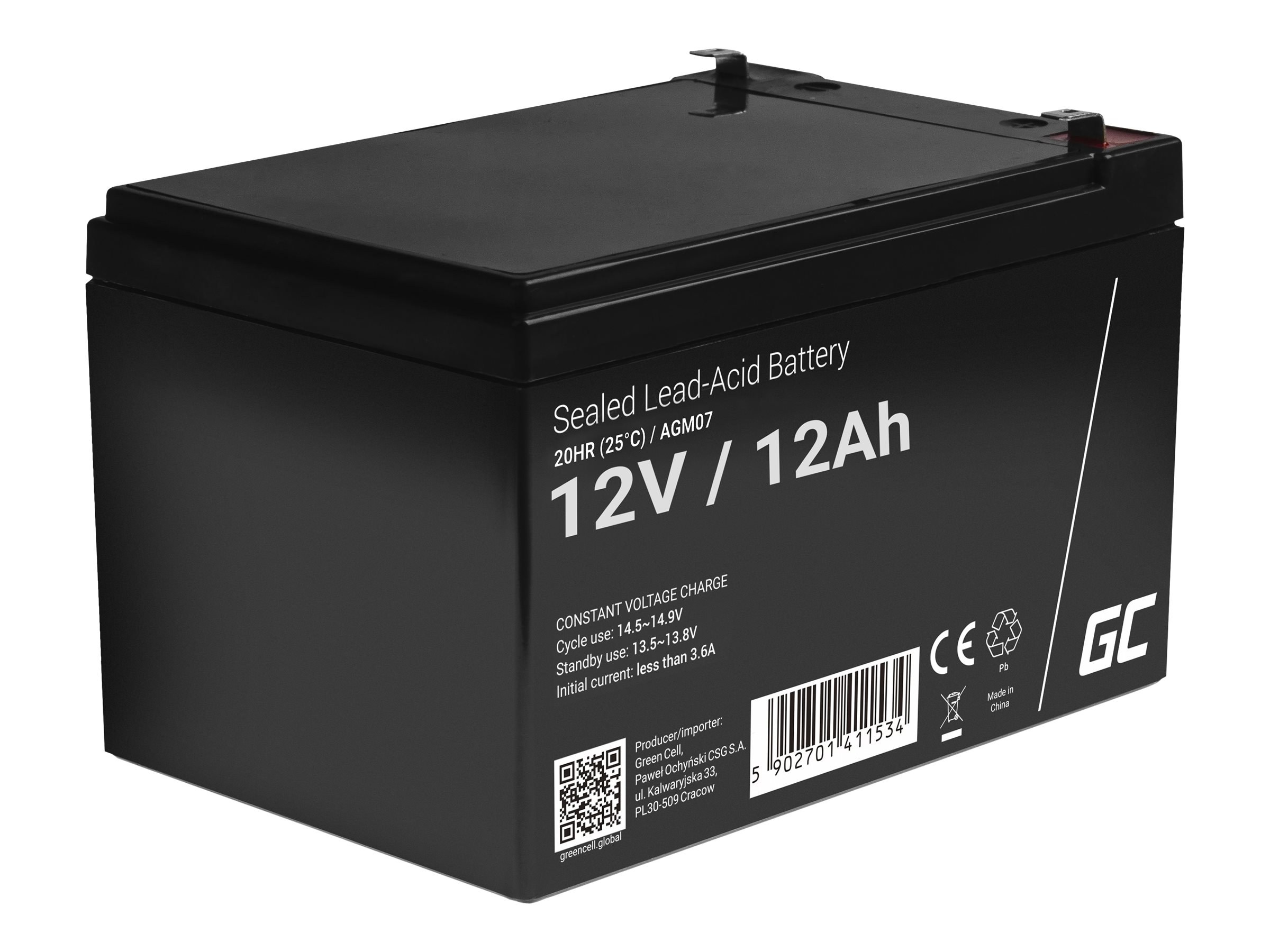 | Produktbeskrivelse | Green Cell - UPS-batteri - Blysyre - 12 Ah |