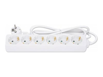 | Produktbeskrivelse | Manhattan Power Distribution Unit EU (2-pin), x6 gang/output, 2m cable, 16A, White, Extension Lead, PDU, Power Strip, Three Year Warranty - stikdåse - 3680 Watt |