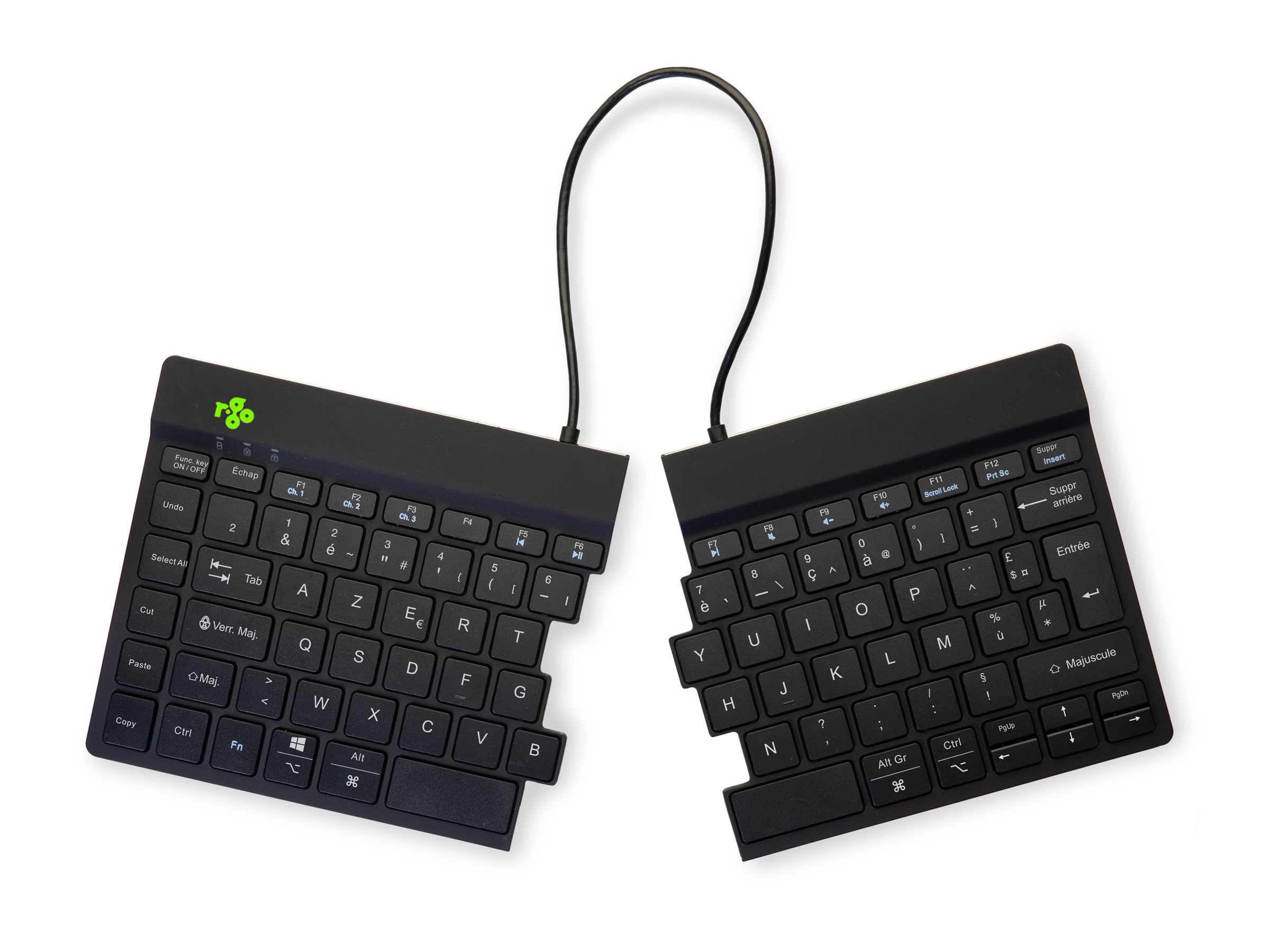 | Produktbeskrivelse | R-Go Ergonomic Keyboard Split break - tastatur - med integreret brudindikator - AZERTY - fransk - sort Indgangsudstyr |