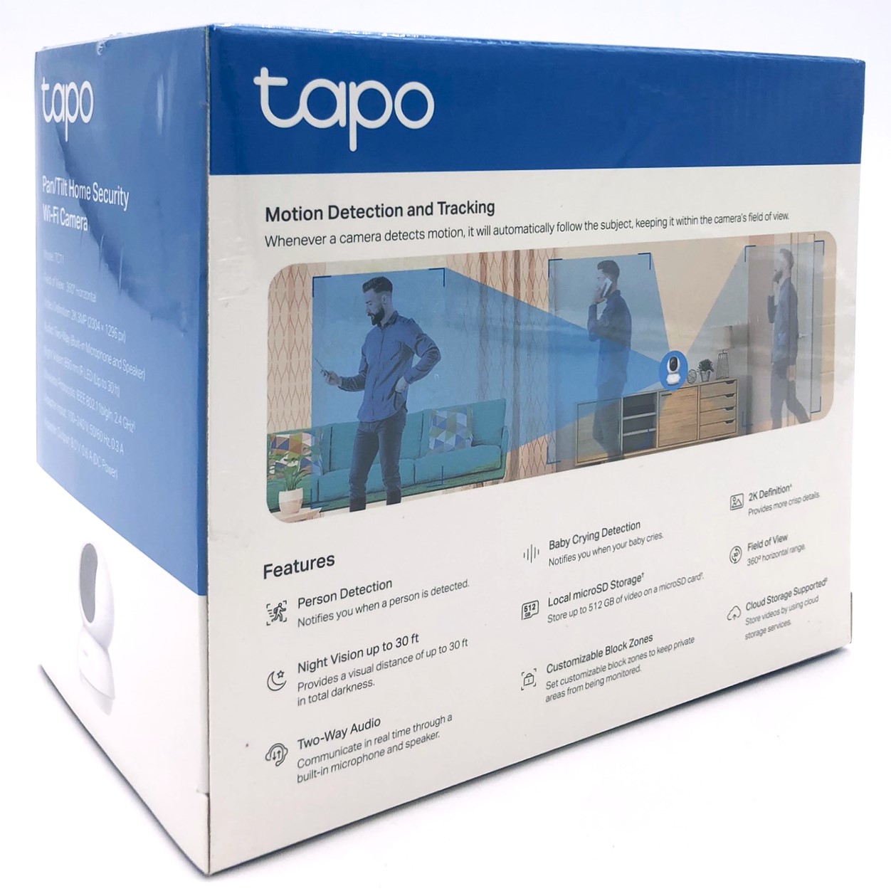 | Egenskaber | Alarmfunktion, ONVIF support, Live Broadcasting, Privatlivs mode, Push Notification, LED-indikator, nulstillingsknap, bevægelses detektion, babygrådsdetektion, op til 9 m nattesynsdistance, Video Screen Sharing, bevægelsessporing, brugerdefineret aktivitetszone |