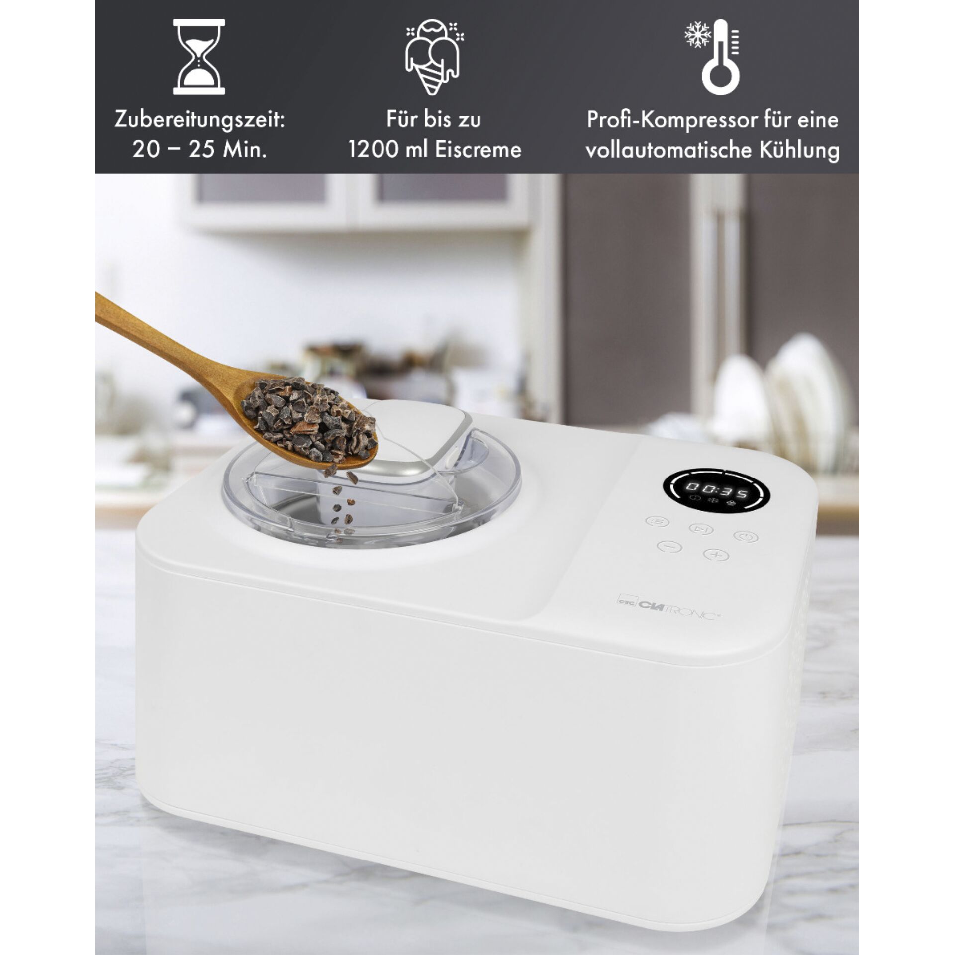 Clatronic ICM 3784 Kompressor ismaskine 1,2 L 110 W Hvid