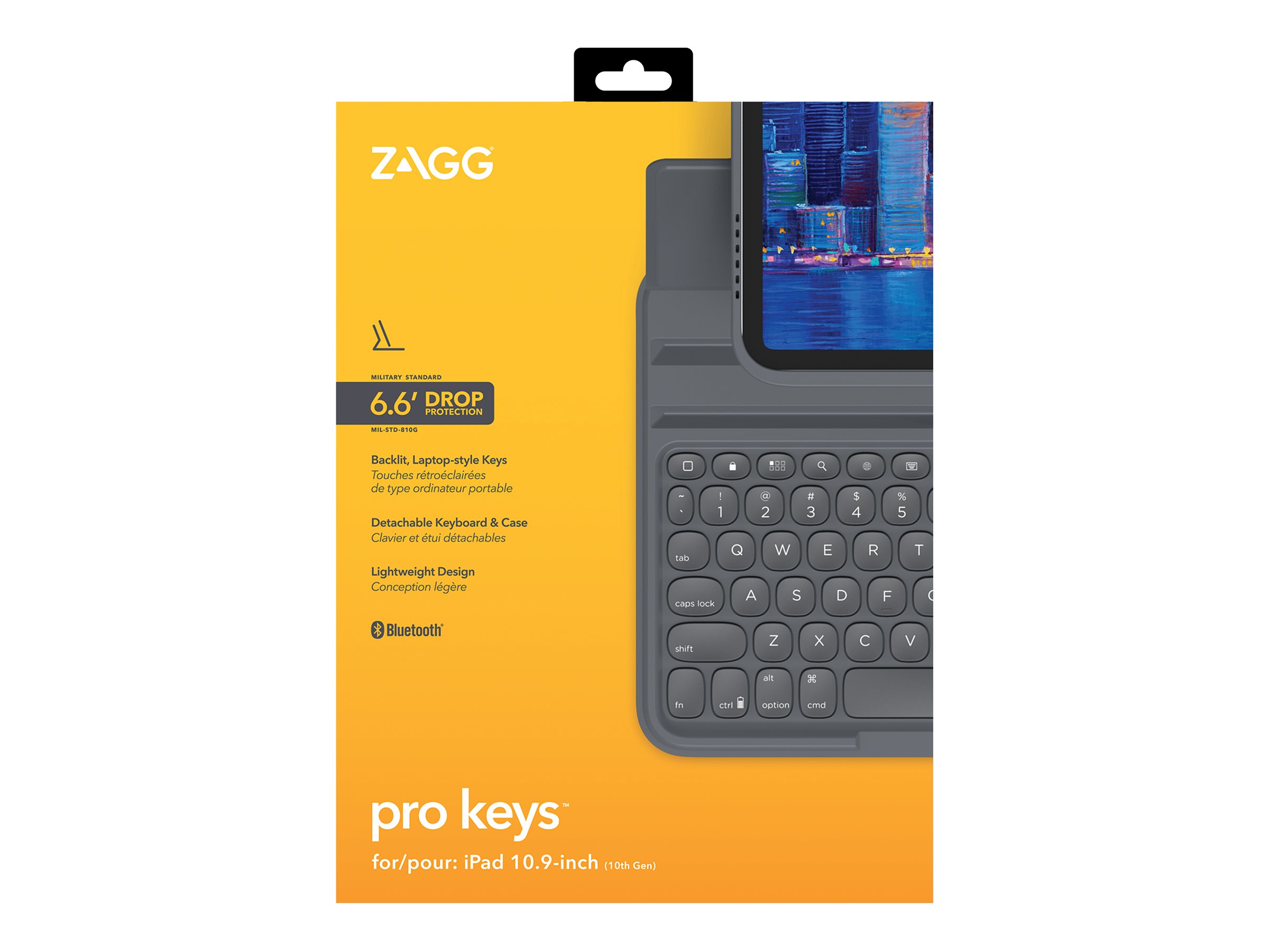 ZAGG Pro Keys - Tastatur og folio-kasse (aftageligt etui) - bagbelyst - trådløs - Bluetooth - QWERTY - UK - for Apple 10.9-inch iPad (10. generation)