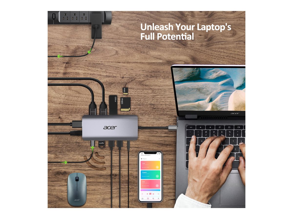 | Produktbeskrivelse | Acer 12-In-1 Type-C Adapter - dockingstation - USB-C - 2 x HDMI, DP - 1GbE |