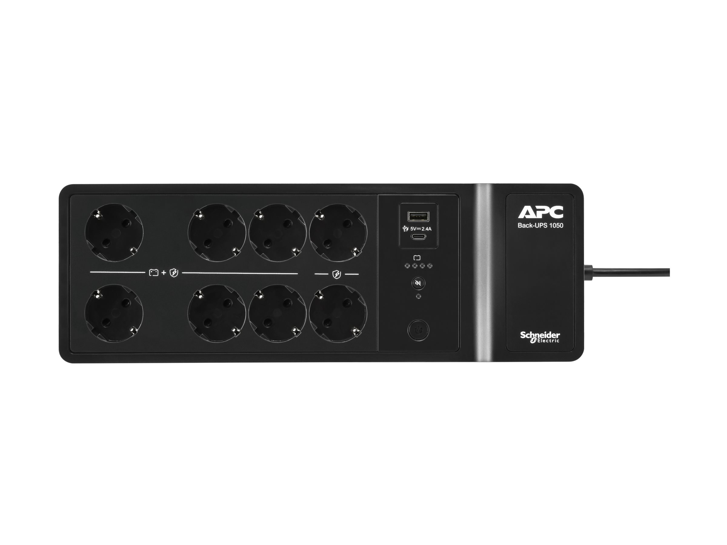 | Output-stikforbindelser | 2 x power CEE 7/3 (overspænding)<br>6 x power CEE 7/3<br>1 x 9 pin USB Type A<br>1 x 24 pin USB-C |