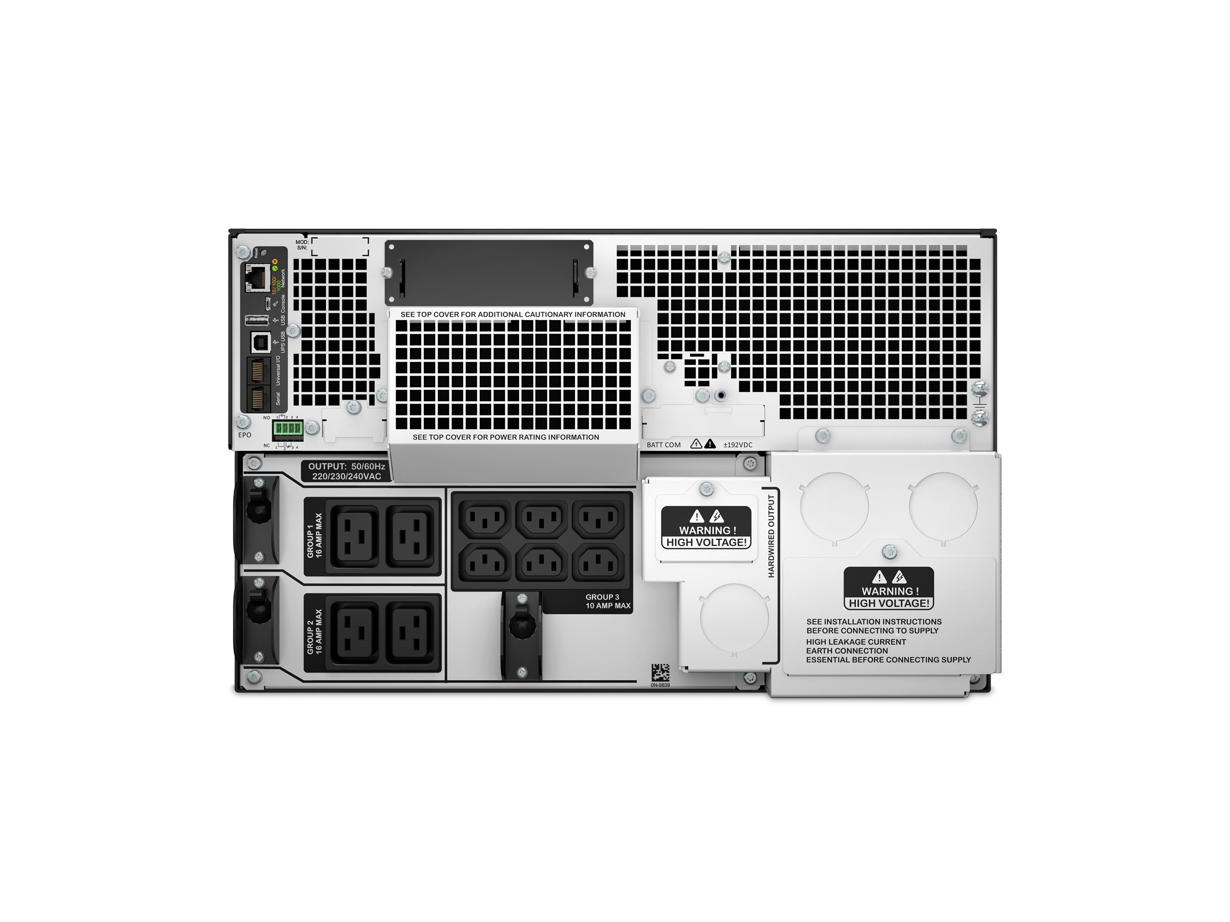| Interfaces | 1 x management (Ethernet) - RJ-45 | 1 x management (USB) - 4 pin USB Type B | 1 x EPO (emergency power off) | 1 x serial - RJ-45 |