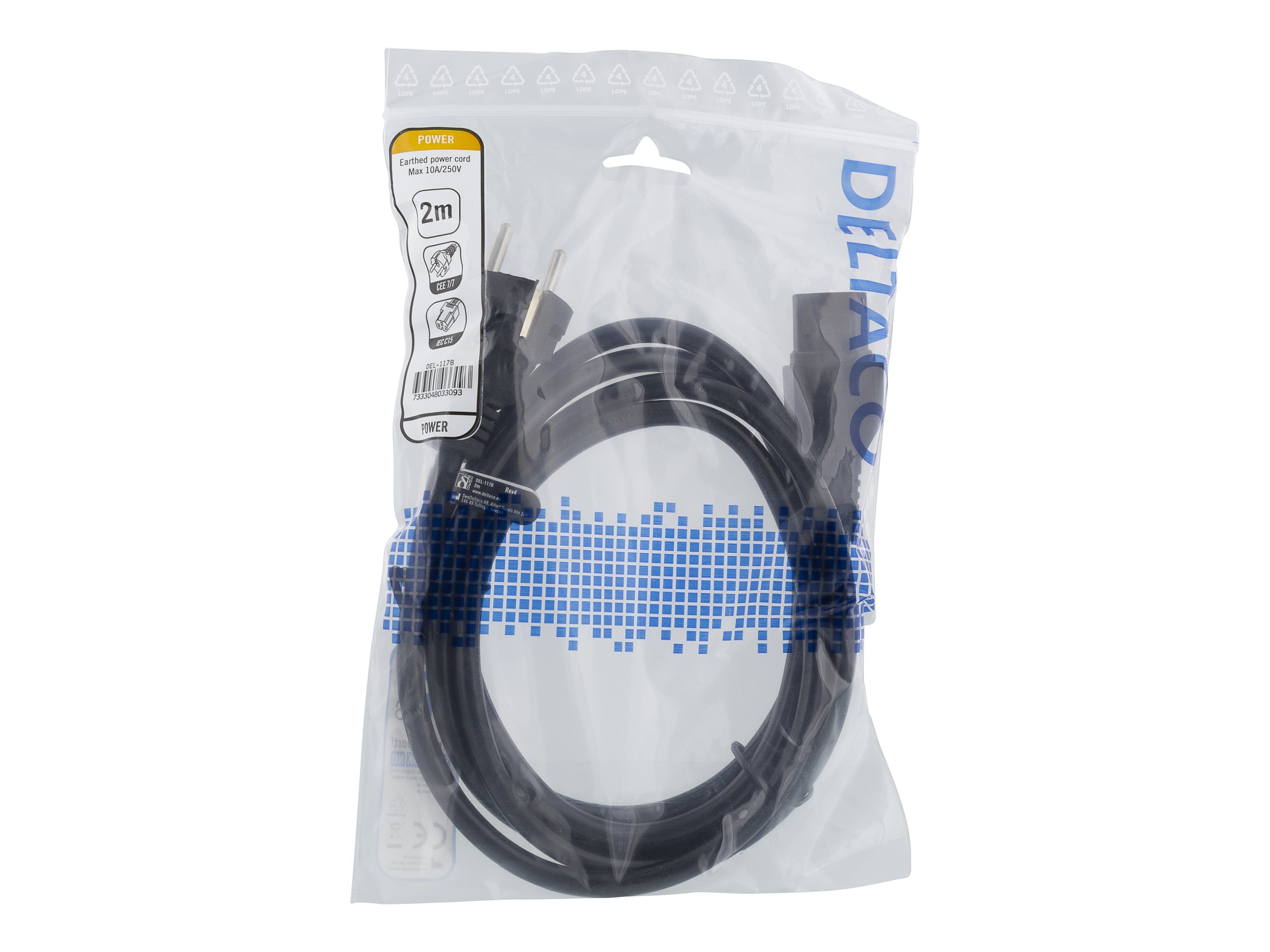 DELTACO DEL-117B - Strømkabel - power CEE 7/7 til IEC 60320 C15 - 250 V - 10 A - 2 m - sort