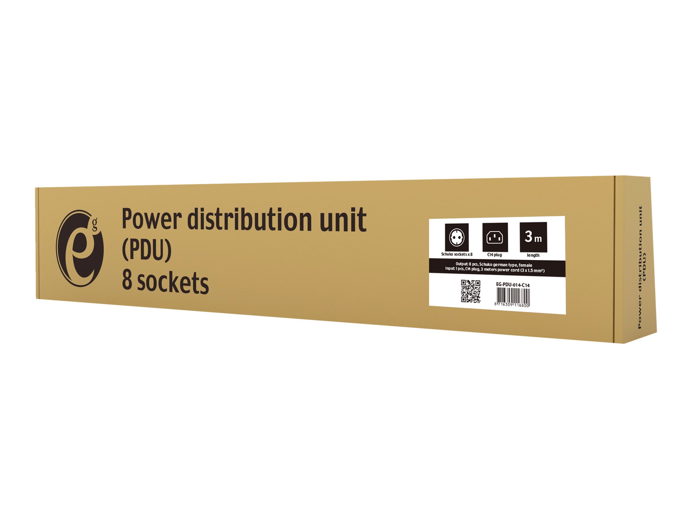 EnerGenie EG-PDU-014-C14 - Strømfordelingsenhed (rackversion) - AC 250 V - 3680 Watt - output-stikforbindelser: 8 (8 x IEC 60320 C14) - 1U - 3 m ledning