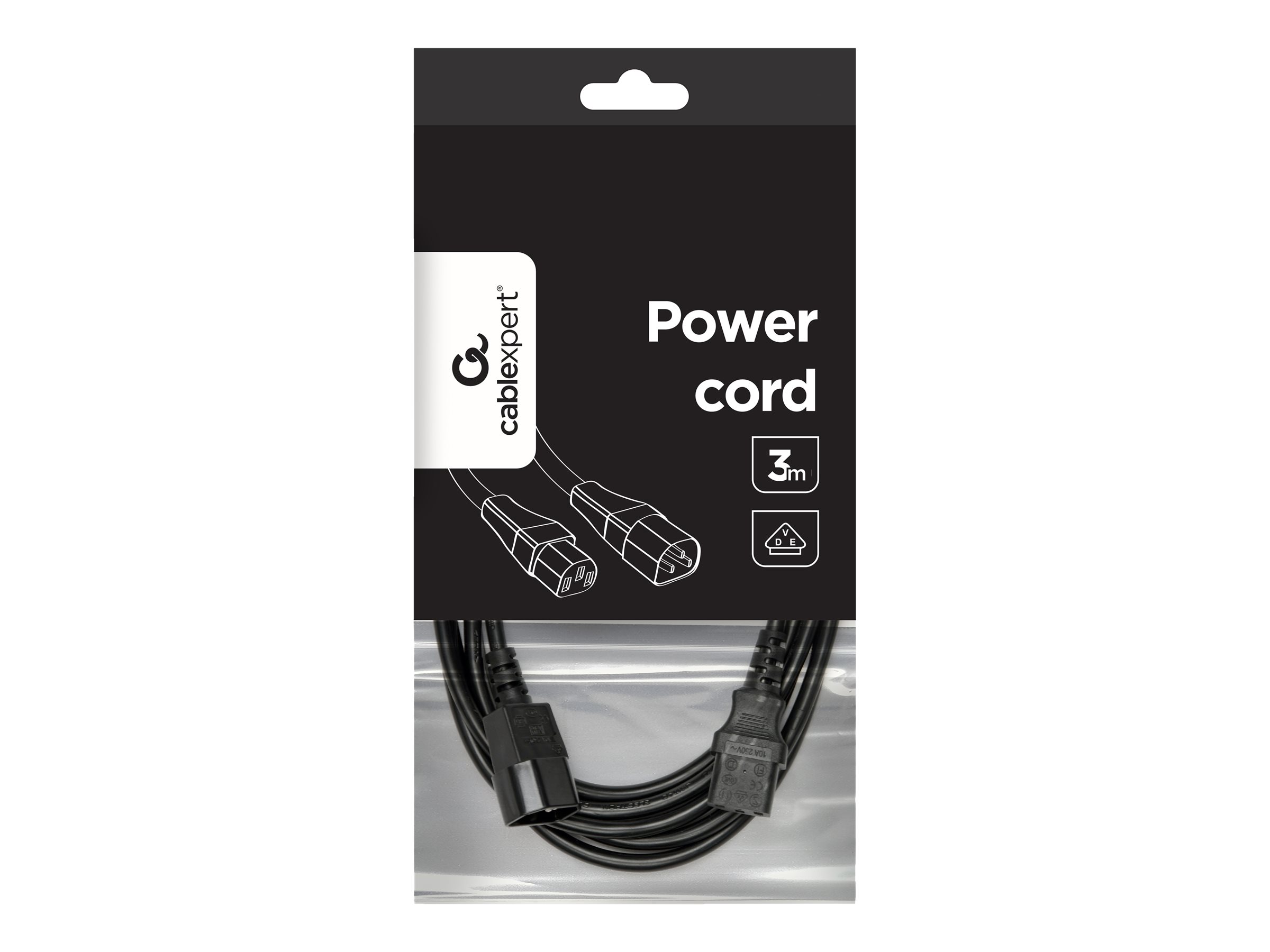 Produktbeskrivelse Gembird PC-189-VDE - forlængerkabel til strøm - power IEC 60320 C13 til IEC 60320 C14 - 3 m