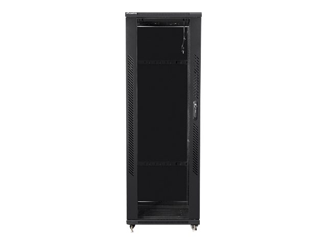 Features Adjustable depth, top & bottom cable entry points, tempered glass front door, removable side panels, steel rear door