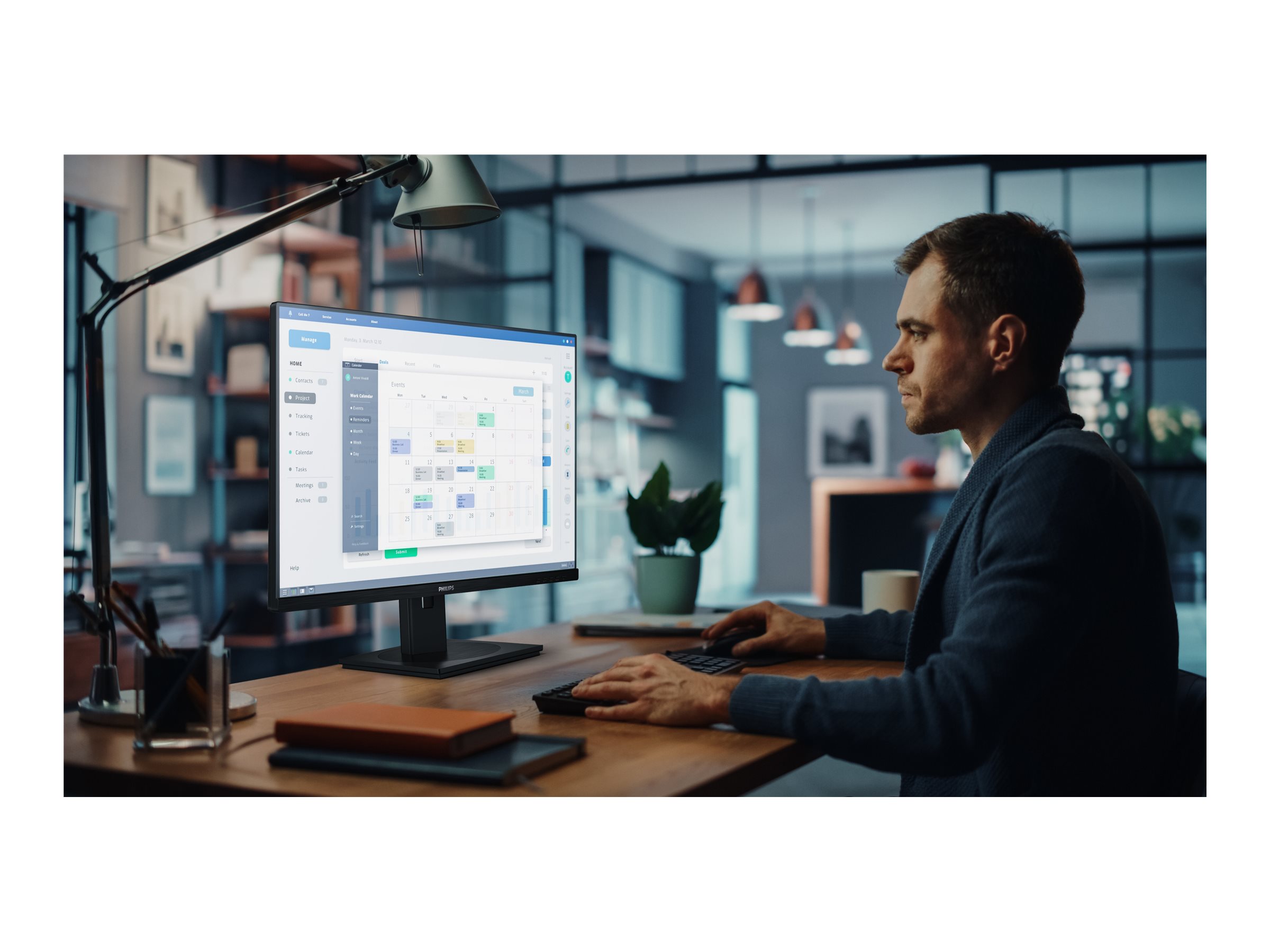 Denne Philips-skærm har en indbygget USB type-C-dockingstation med strømforsyning. Det slanke USB-C-stik, der kan vendes, giver mulighed for nem dokning med ét kabel. Gør det hele mere enkelt ved at slutte alle dine eksterne enheder såsom tastatur, mus og et RJ-45 Ethernet-kabel til skærmens dockingstation. Du skal blot slutte din bærbare pc til denne skærm med et enkelt USB-C-kabel for at kunne se video i høj opløsning og overføre data med superhurtig hastighed, mens du tænder for og genoplader den bærbare pc samtidigt.