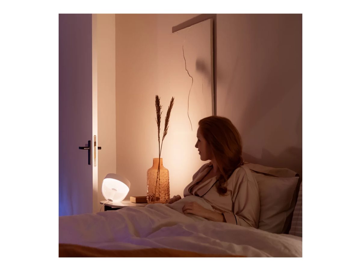 Forbind din Philips Hue limited edition Iris lampe med din Hue Bridge, så du kan bruge den indbyggede 'Vågn op og fald i søvn'-rutine, som hjælper dig med at vågne og falde i søvn på en mere naturlig måde. Lampens dybe dæmpningsegenskaber, kombineret med dens diffuse baggrundslys, giver dig mulighed for at vågne til din egen personlige solopgang om morgenen, når dine lys nænsomt lyser op, eller gradvist dæmper det varme hvide lys for at hjælpe dig med at falde i lettere i søvn.