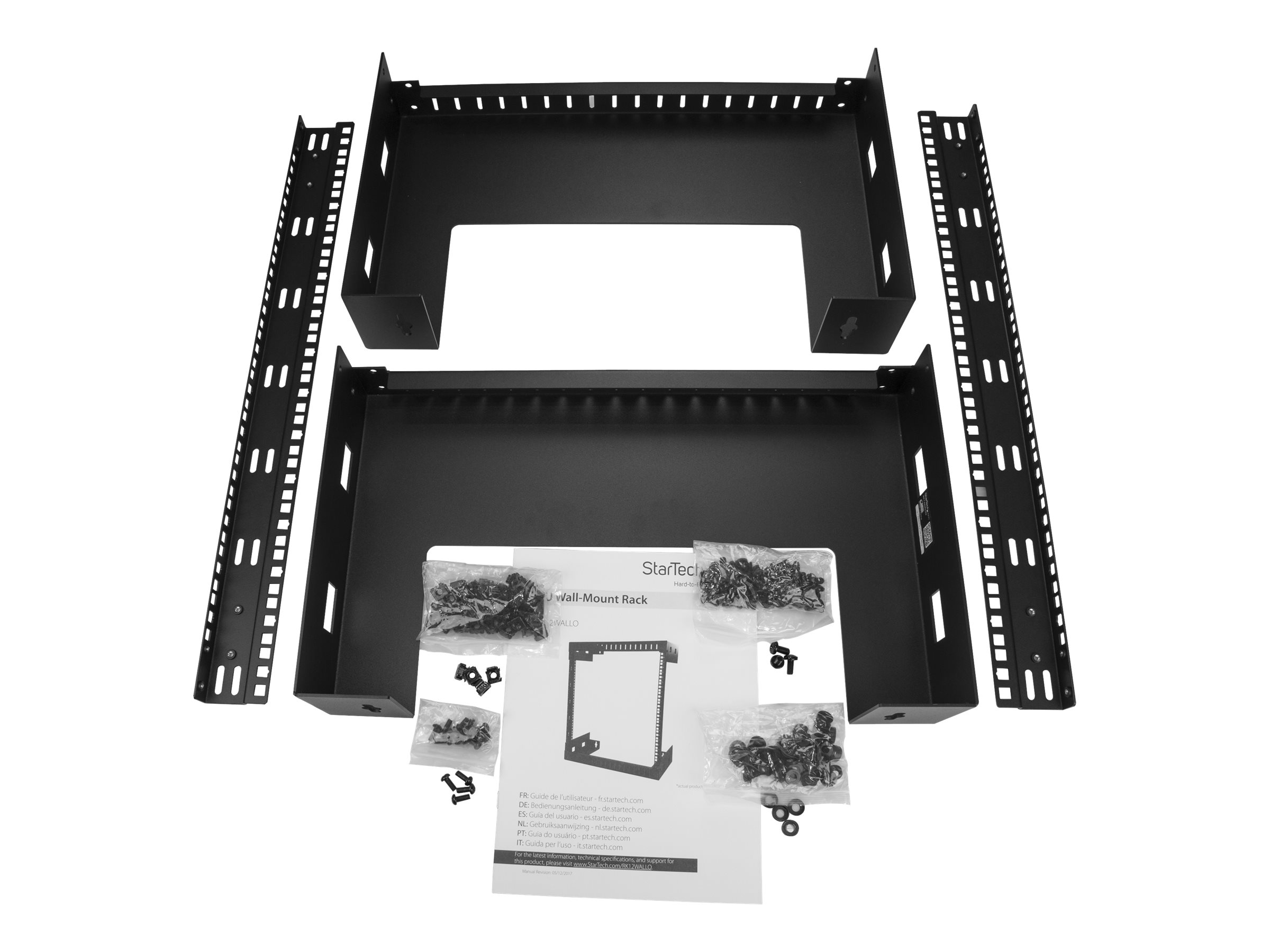 | Produktbeskrivelse | Startech 12U 19" Wall Mount Network Rack - 12" Deep 2 Post Open Frame Server Room Rack for Data/AV/IT/Computer Equipment/Patch Panel with Cage Nuts & Screws 200lb Capacity, Black (RK12WALLO) - rack - 12U |