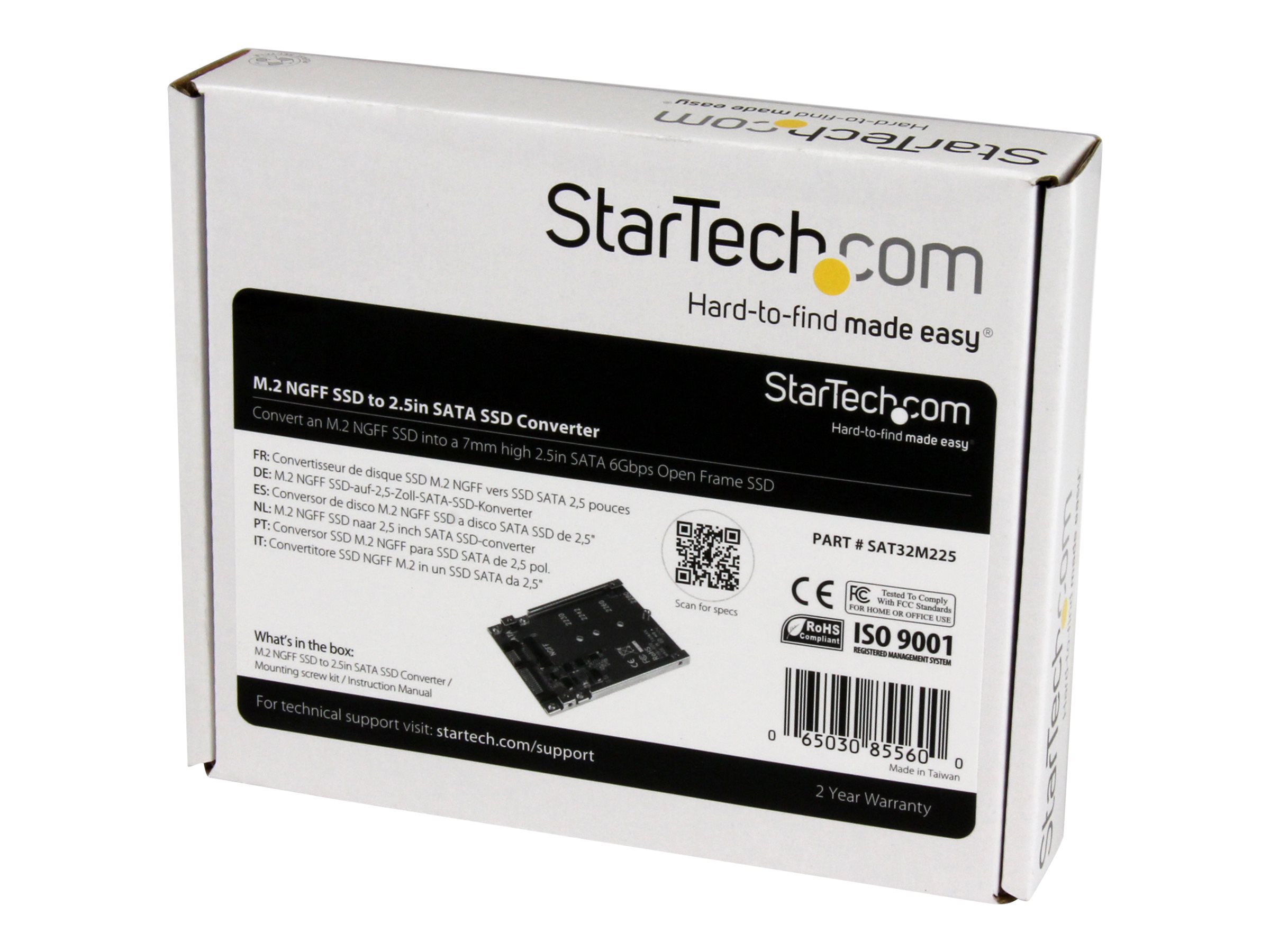 | Produktbeskrivelse | Startech M.2 SATA SSD to 2.5in SATA Adapter - M.2 NGFF to SATA Converter - 7mm - Open-Frame Bracket - M2 Hard Drive Adapter (SAT32M225) - lagringskontrol - SATA 6Gb/s - SATA 6Gb/s |