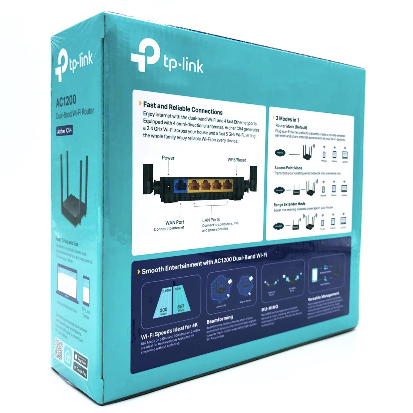 | Egenskaber | DHCP-understøttelse, NAT-understøtning, IGMP snooping, SPI, URL-filtrering, forældrekontrol, Tilgangspunkt, drift, QoS, WPS, DHCP server, port fremsendelse, nulstillingsknap, port triggering, dynamisk IP modus, IP-MAC binding, mærket VLAN, IGMP proxy, DHCP-reservation, stråleformeteknologi, dobbeltbånd, gæsteadgang, 2x2 MU-MIMO-teknologi, DMZ-support, DynDNS, brotilstand, IPTV support, 4K HD videostreaming |