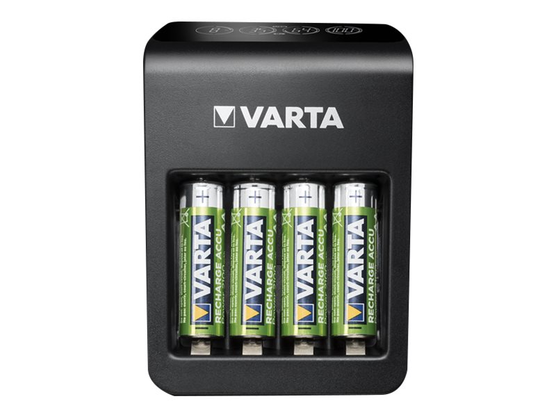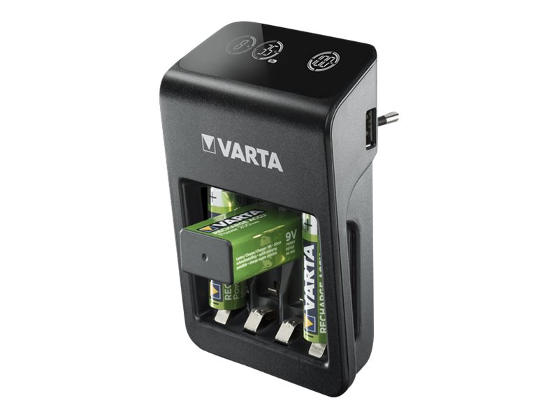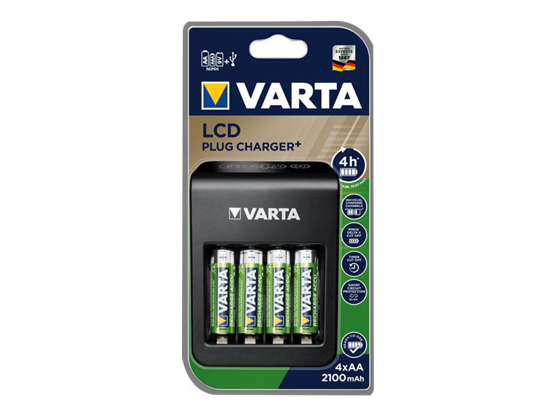Varta LCD Plug Charger+ - 4 t batterioplader/strømadapter - (for 4xAA/AAA, 1x9V) 4 x AA type - NiMH - 2100 mAh (USB)