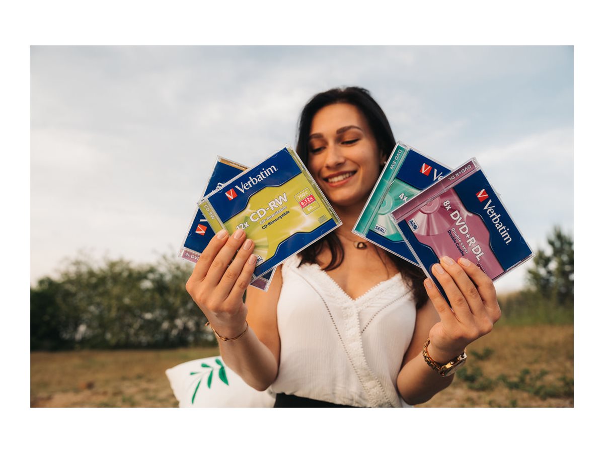 Verbatim CD-RW bruger Verbatims teknologi, som sikrer, at enhver optagelse er af en overlegen kvalitet. Disse diske er ideelle til deling af computerdata, hjemmevideoer, fotos og musik.